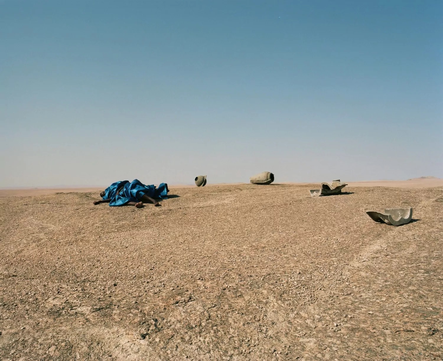 In den Arbeiten der Serie The Silence Never Was More Penetrating? Bugs from out of Space on Acid Killing Each Other referiert die Künstlerin nun auf bizarr-verwaiste Landschaften. Jedoch transportieren auch sie Spuren von Geschichte, seiner Menschen und das Echo ihrer Stimmen. Reste einer Zeit, von Erinnerungen werden in ihnen sichtbar, die jedoch weder räumlich noch zeitlich eindeutig zu verorten sind. Entstanden während einer einmonatigen Reise nach Namibia konfrontiert Rusch in diesen Arbeiten die nostalgische Urtümlichkeit dieser Landschaft umgehend mit heterogenen Einschreibungen unserer globalisierten, enträumlichten Welt.
